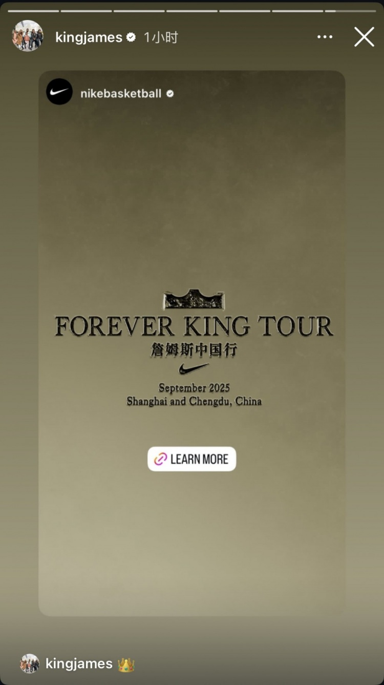 期待值拉满!耐克篮球官宣詹姆斯中国行 詹姆斯IG转发并评论👑 byxiaoqiao 发表于2025年09月12日 8月22日讯 今日,湖人前锋詹姆斯更新Instagram Story动态。詹姆斯转发了耐克篮球官方Instagram发布的詹姆斯2025年中国行的官宣动态,并评论了👑的表情。耐克官方宣布詹姆斯将于2025年9月先后前往上海和成都展开个人生涯第15次中国行,目前已经公布成都站的活动日期为9月5日。 你可能感兴趣的内容 上一篇文章 开云体育官网-小基恩欧协联被扯头发后肘击对手染红,对方球员未受处罚 发表于2025年09月12日 byxiaoqiao 查看文章 下一篇文章 【韩K2联】天安城vs华城FC首发阵容名单(2025年07月12日) 发表于2025年09月13日 byxiaoqiao 查看文章 你可能会喜欢